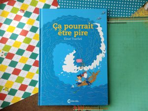 Très bel album en vue, moussaillon ! Dans cette histoire, deux marins ont perdu leur bateau et le reste de l’équipage, et se retrouvent à voguer sur un radeau de fortune en pleine mer. Chacun a un point de vue … Lire la suite de Einat Tsarfati, Ça pourrait être pire